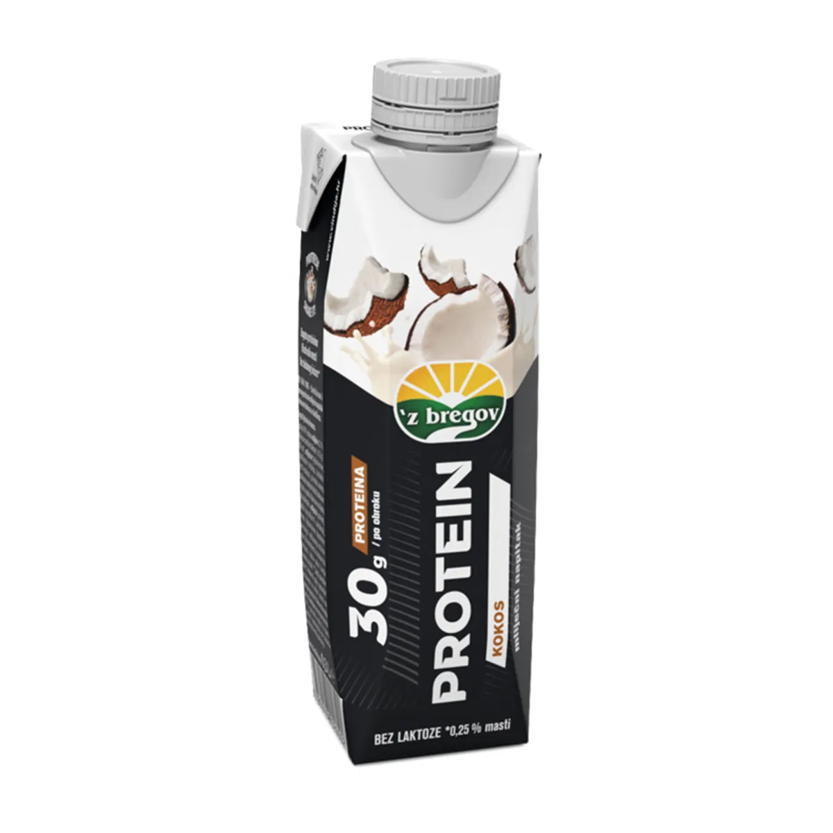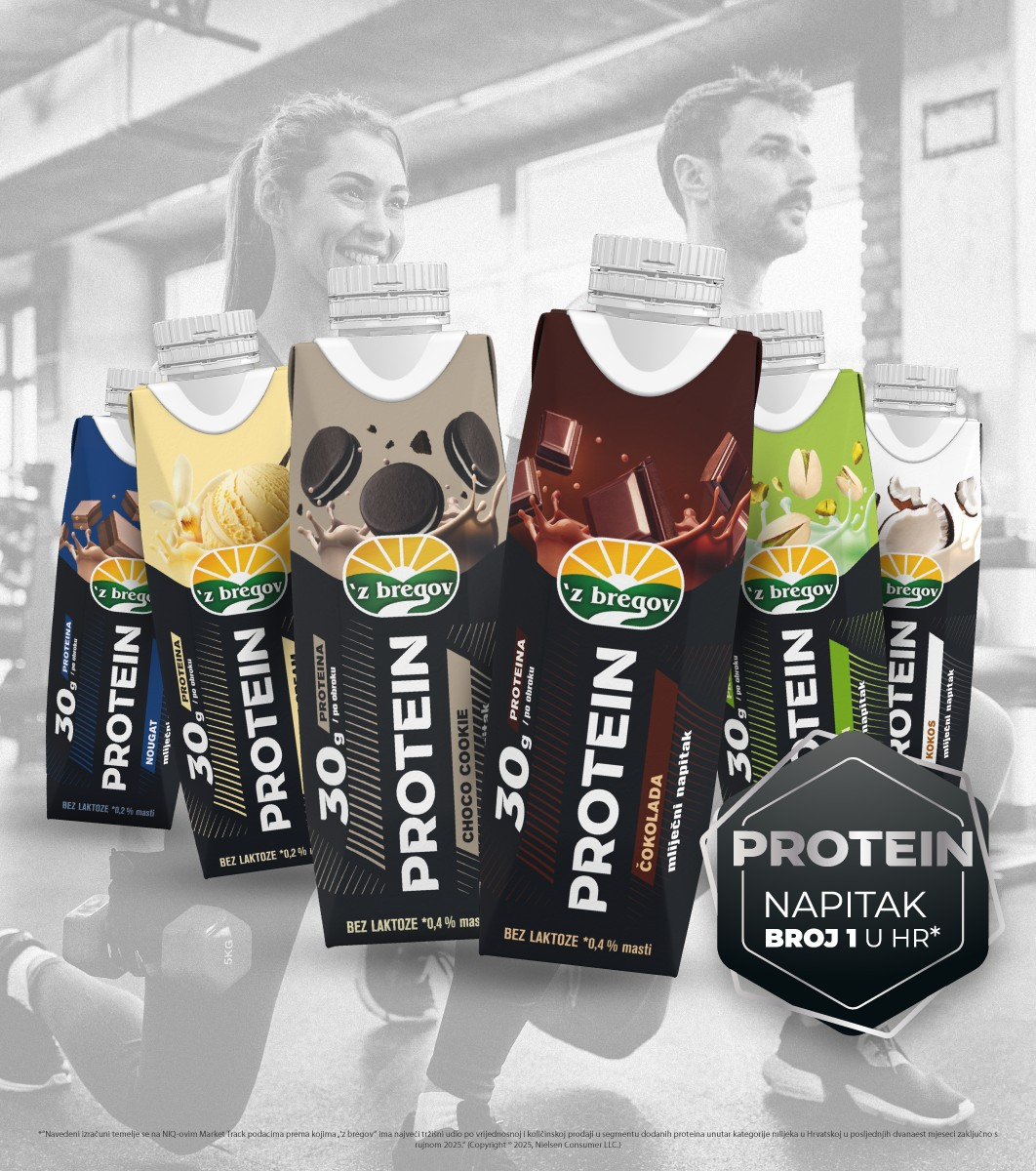 Elke fles 'z bregov-eiwitmelkdrank van 0,5 liter bevat 50 g eiwit, wat de aanbevolen dagelijkse eiwitinname is. Ze bevatten geen toegevoegde suikers en bevatten alleen natuurlijk voorkomende suiker uit melk.
